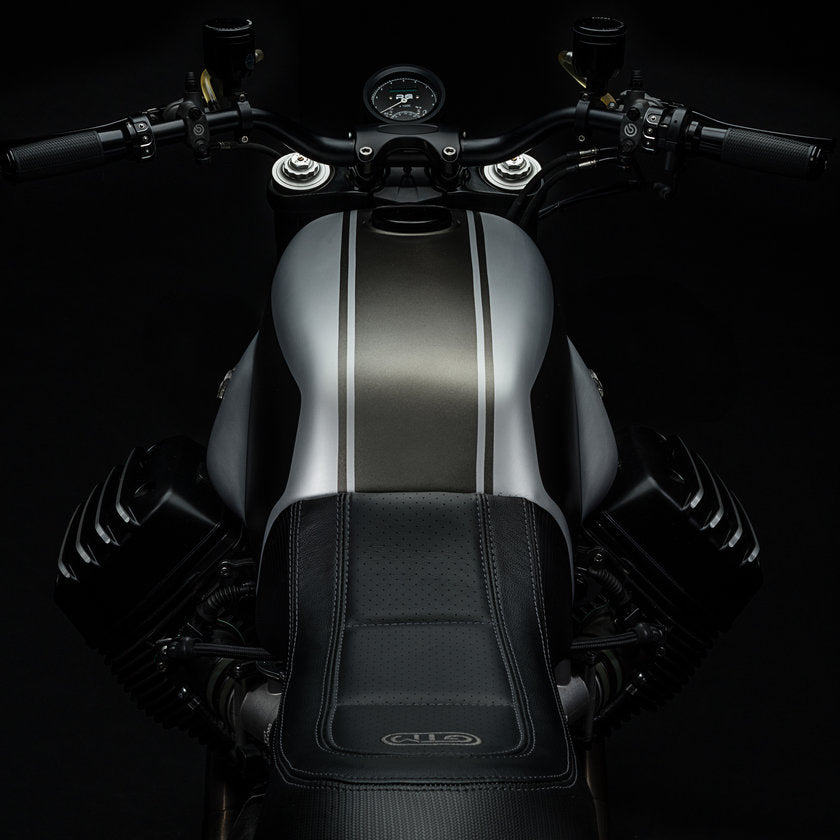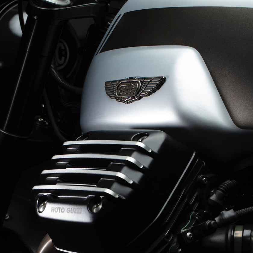Our very first proof-of-concept GTM® build was conceptualized by merging Moto Guzzi’s most venerable “gentleman’s racer” twin shock Tonti frame to their modern monoshock single-sided-swing-arm CARC rising rate suspension, all while focused on lightning and strengthening. Then we breathed some serious fire into the 1151cc 4-valve head Griso engine, raising the displacement to 1380cc and maximizing flow, then we focused on shedding every unnecessary pound of weight, by using the best available technology and components, from electronics down to forged aluminum wheels. The result is one of the most intoxicating Guzzis on the planet. Titled and plated in California. This can be duplicated on our GTM-02.x frame. It’s currently FOR SALE.